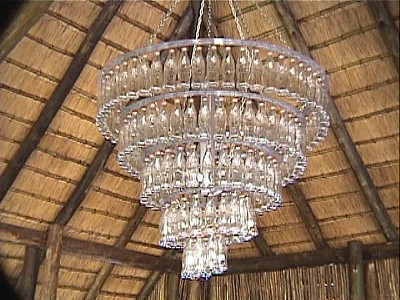 One of the infamous coke bottle chandeliers at Vuyatela! They are not only beautiful, but chime softly while there is a breeze, too!