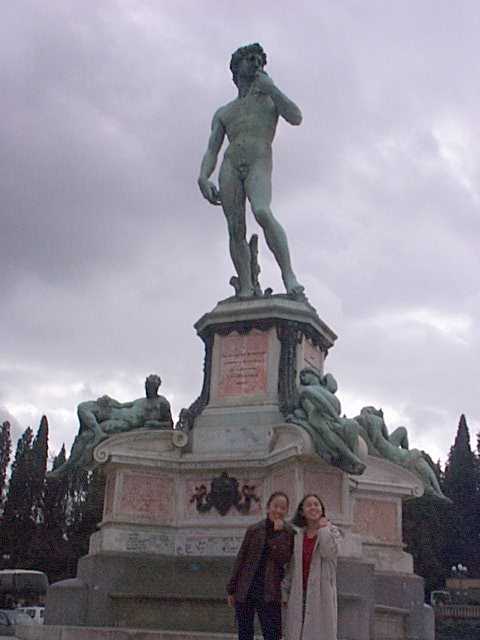 Katie and I posing in front of David (by Michelangelo) in the Plaza Michelangelo. It's not the real David, it's one of the 2 casts/molds (i can never get those two straight) that was made of the original, which is now in some museum.