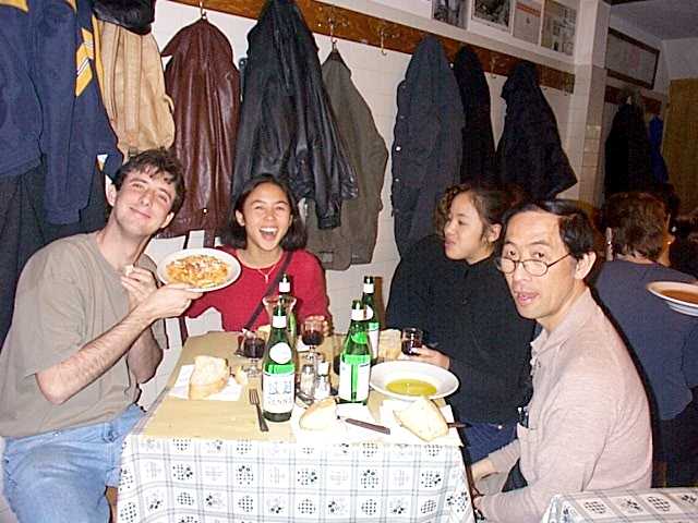 This is us eating in a ristorante in Florence with Simon, Katie's best friend's boyfriend. (He's doing a semester abroad) The Italians have wine, even with lunch. Lunch was a 3 course meal. Yummy.