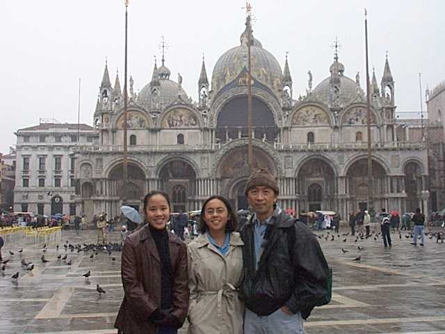 My sister, my dad, and I in front of St. Mark's Basilica in Venice. Some Venetian merchants smuggled his body out (under pork!) and into Venice, where it now is.