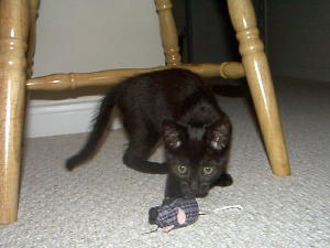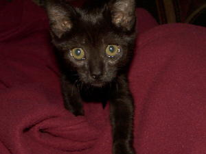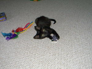 I wanted to show some pictures of the new edition to our family! Smokie, our kitten, is a little over 8 weeks old, and she is very active, about 3 hours out of the day! Her favorite activities include attacking feet, pouncing on her toys, eating, and sleeping.