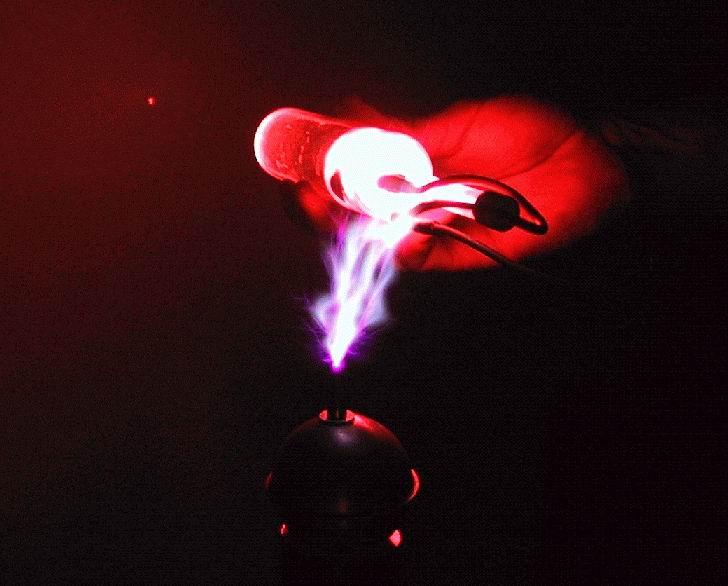 Rick and Robyn are great people, we're glad they were able to make it all the way from Kansas. We had lots of fun, not only with high voltage stuff but at the beach also -- where Rick and I experienced some MAJOR undercurrents! Robyn was the only sane person there I think, the water was very cold and the waves were over 5 feet...she stayed on dry land...