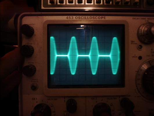 | Gates | IC output | drive xstr E | RF env, 1/2 wave | RF env, filt. DC | |
