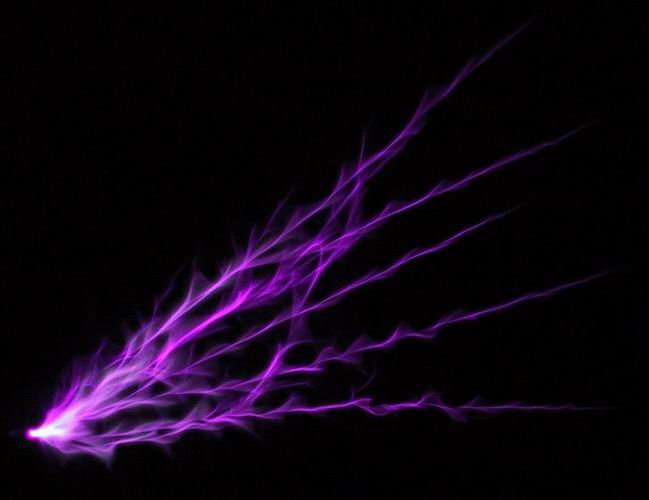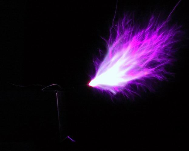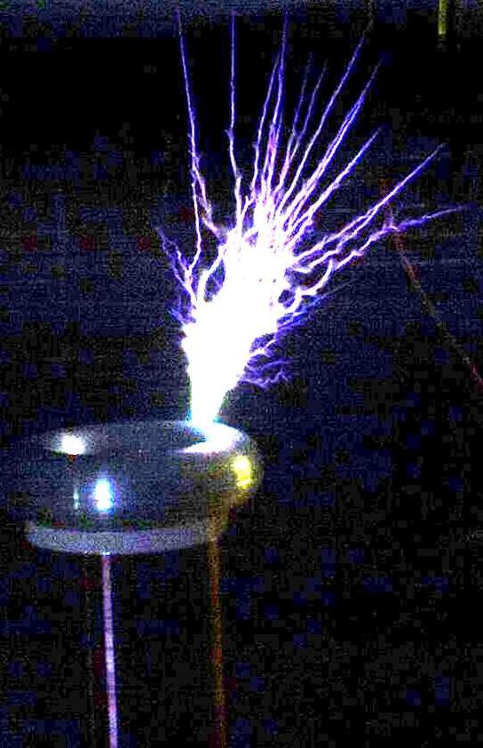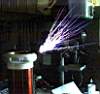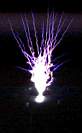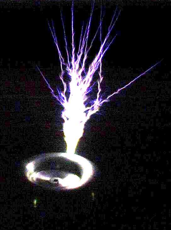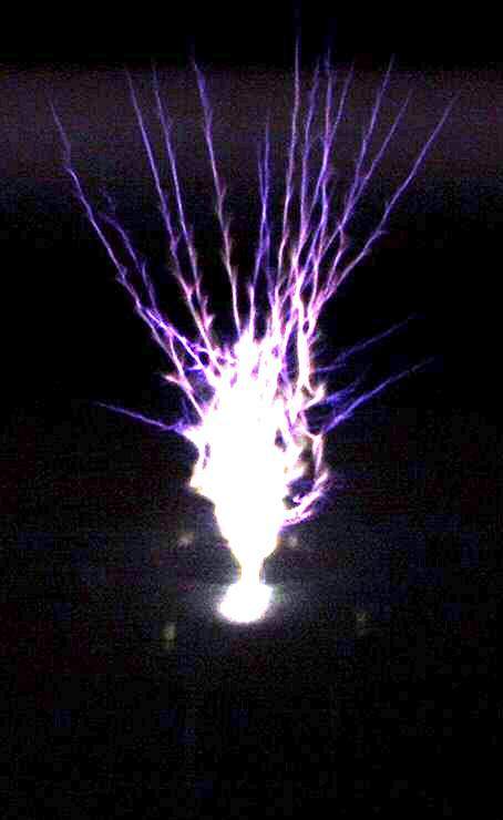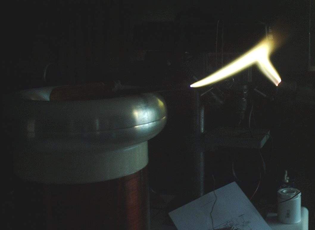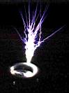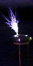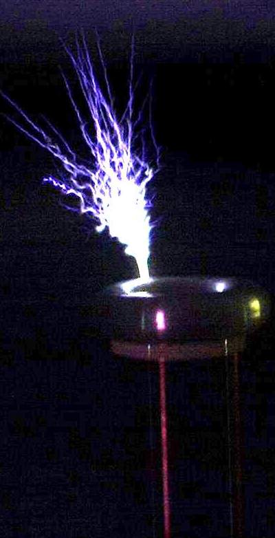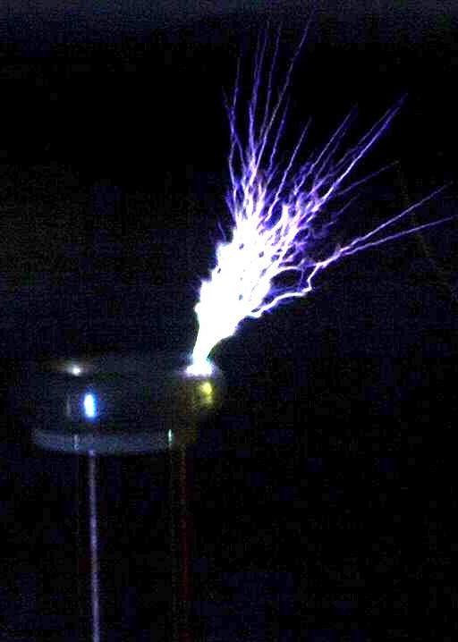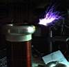 Our findings have been that up past 1kHz, the staccato frequency starts to hurt the output sparklength severely. Sparks go from 14" with no staccato, to about about 4" with staccato at 10kHz. But it sure looks weird. Kind of like the arc from a flyback transformer when you blow air across it, just like that, except the whole 4" streamer looks that way. The common banjo effect, at 10kHz this time...