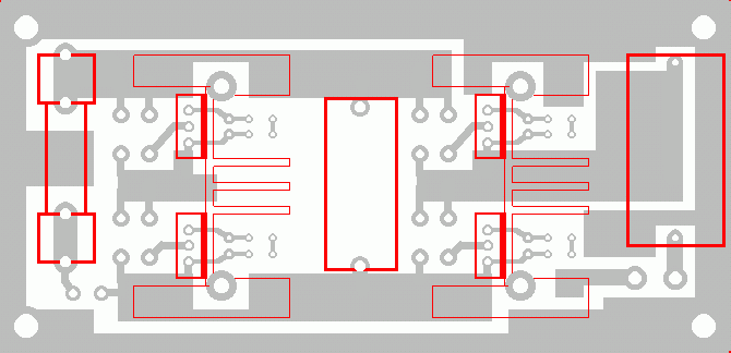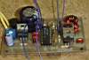 This is the 556 Staccato Driver Board, made directly off of the copper and silkscreen layouts seen above. On the left side of the board, an LM317 based pwr. supply. Then the 556 controller, then bipolar transistor amplifier stage, then a DC decoupling capacitor (OK ok, so it's an electrolytic!), then finally the two gate drive/isolation transformers. Very simple, very cheap, and gets the job done.