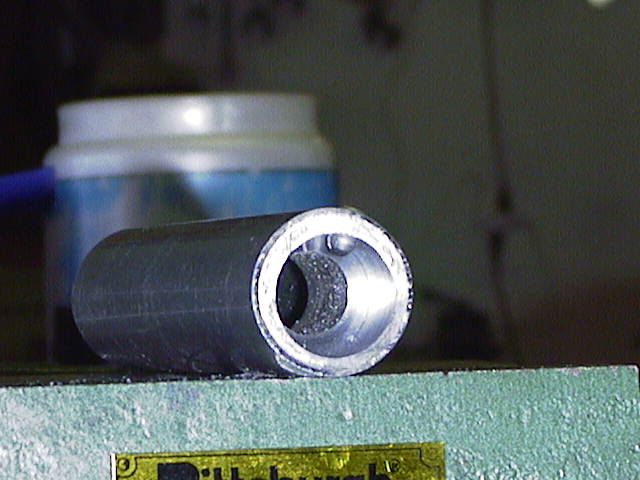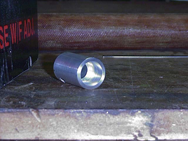this is the outboard end of the bushing... counter bored .75 inches deep so that the same rivets used on the aileron and elevator thimbles can be used here.