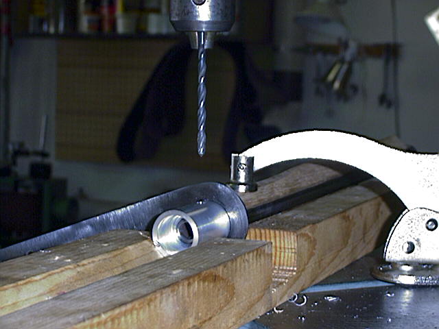 the bushing and tube get drilled. They are held very tightly in the "V" of the