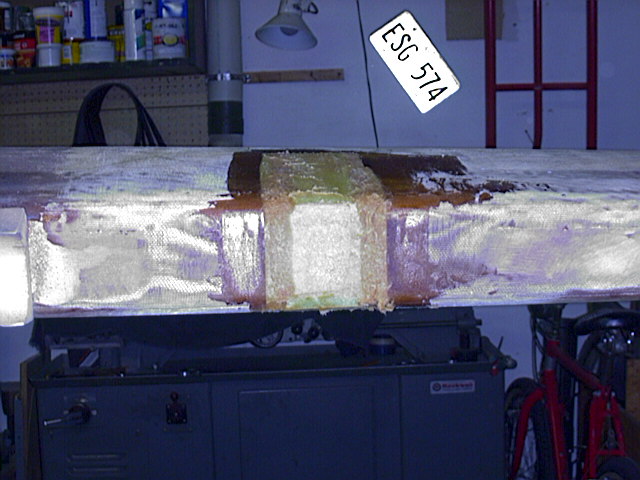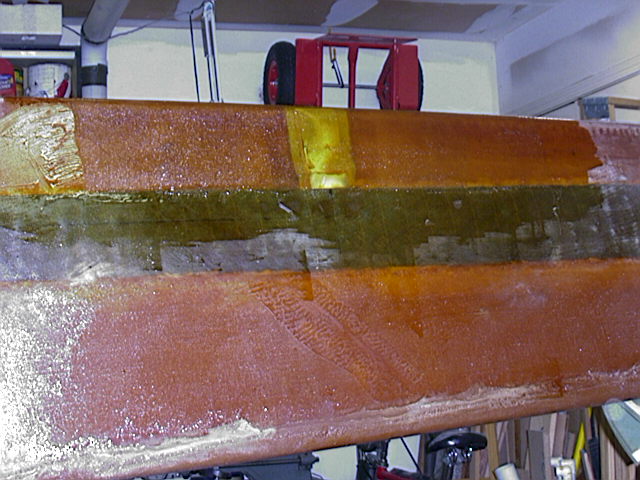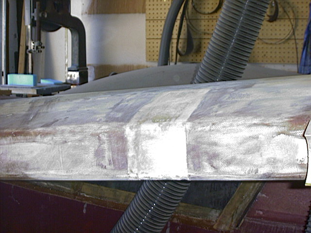 This is the initial 20" wide strip of UNI, from the dge of the spar cap, overlapping the drag spar.