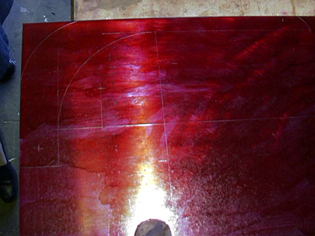 Before I painted on the layout dye, I belt sanded the sheet of steel with my 4x21" sander, with 60 grit paper. This was done to clean off a lot of the rough texture that is left behind from the hot rolling process. After all of the individual pieces were cut from the flat stock, I again belt sanded them with an 80 grit belt.