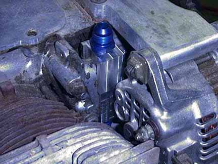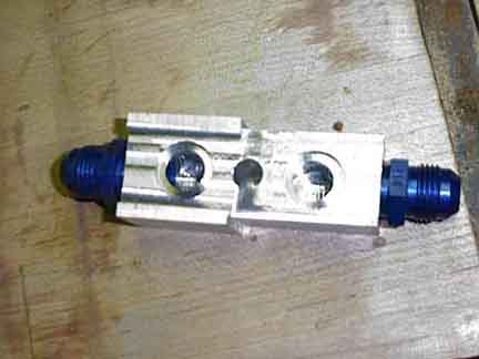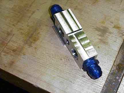 The next step in the process was to figger a way to get the oil from the block, through a filter, through a cooler, and back to the block. I needed my own adapter.