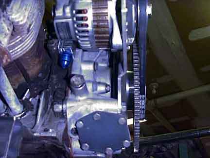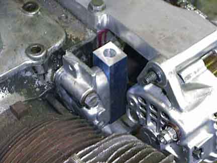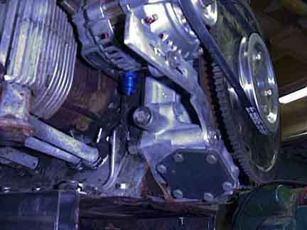 Here's what it looks like, installed. There really IS a lot of room between the nipple and the alternator adapter plate, but the angle that the picture was taken makes it look close.