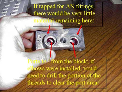 Here is a picture of the stock Corvair oil cooler adapter. Aside from the annotations on the picture, I understand that tapping cast aluminum for pipe fittings is a no-no, due to it's extreme propensity to stress crack.