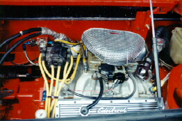 The engine is a Chevy 350 4 bolt main, bored .040 over, roller rockers, Comp Cams 268 cam, Rhoads variable duration lifters, true roller timing chain, Edelbrock intake, Holley carb, free flowing dual exhaust, Keith Black pistons, balanced & blueprinted, TRW high volume oil pump, stainless oil pump shaft, HEI ignition, various Accel ignition parts.