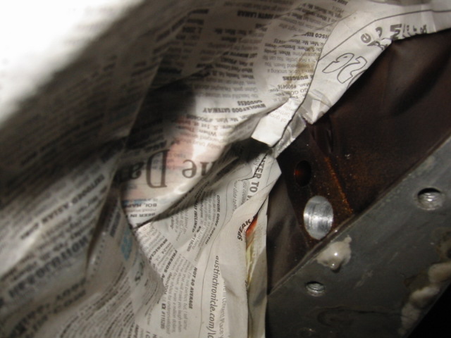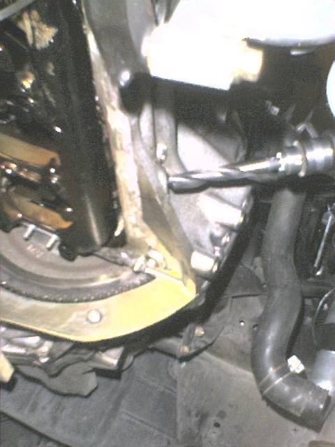 The hole as viewed from the inside. Note the paper stuffed around the crank to deflect the shavings.
