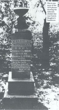 In this current photo (taken in July of 1998), Francis A. Slaughter's grave is recognizable only by the the foot marker which clearly displays |
