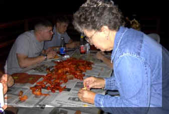 Friday night we had a "Crawfish Boil." This was something new to the Florida folks...but they got the hang of it purdy darn quick, and we had a blast!!