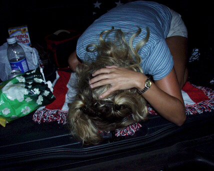 This is the drive in in Tulsa Oklahoma. It was kind of cool. You listen to the movie over your car stereo. I kept worrying my battery would go down, but it didn't. Man it only cost 11 bucks and you get two movies. I think we saw scary movie and another one started but we where to tired to stay. If you ever visit Tulsa, visit the Drive In movies. They have two screens.
