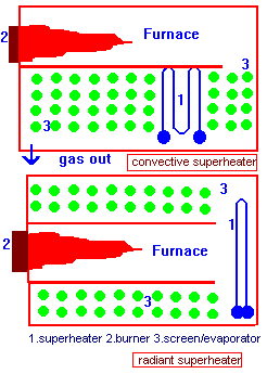 cooling inside tubes and higher radiant heat flux outside,the radiant superheater