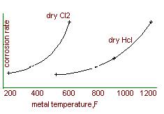 hydrogen chloride corrosion rate increases significantly beyond 800 F(even