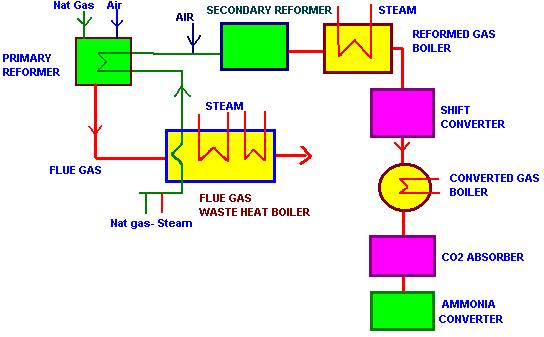 of natural gas or naptha. The flue gases thus generated leave the reformer