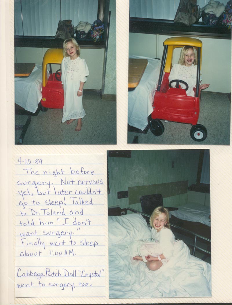 The night before Victoria's Fontan. She was having fun in the little car in the halls of the hospital.