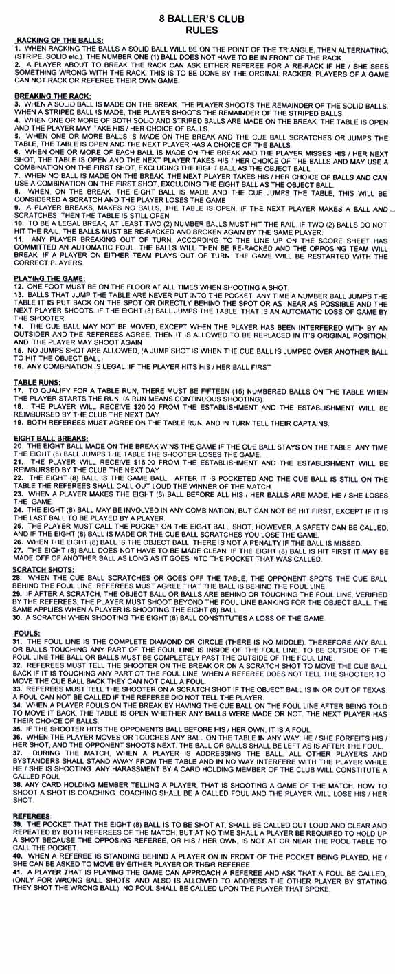 Sight Navigator Home History of the Pool League Officers, Members, Sponsors, & Contacts 8 Ballers Club Rules Teams & Standings Schedule The Archway Map to Archway Menu Teams of the Past Team Pictures
