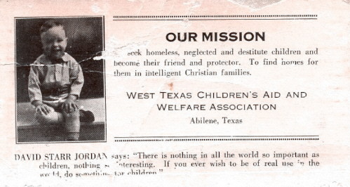 Click To Enlarge This page is dedicated to those desiring to know their birth parents. If you have information about the West Texas Children's Aid and Welfare Association, please contact the Editor at: John DeBusk