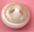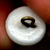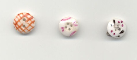 If imitation is the sincerest form of flattery...then the humble china calico should be proud. Pat Fields has turned up some very interesting plastic reproductions of china calico buttons. She found the two pictured patterns in brown and also in blue and pink. She thinks that they may have come from sample cards sent to clothing manufacturers. Does anyone have any additional information to pass along?