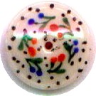 Other china whistles appear occasionally that don't seem to fit the shapes and patterns listed in the Guidelines for Collecting China Buttons. Some of these may be china whistles that weren't reported at the time that the book was written. Others may be buttons that were plain when they were manufactured and individually decorated at a later date. Some collectors call this latter group "kitchen chinas" meaning that the old china buttons were painted with a new design by painters sitting around the kitchen table. The "kitchen chinas" are still very collectible, but their use in competition is open for discussion.Shown here are china whistles that may be "beyond the book" or may be "kitchen chinas" or they may be glass. Do you have similar examples that you would like to share?