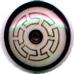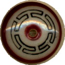 Smooth, convex center; flat border with cogwheel patternShape 15