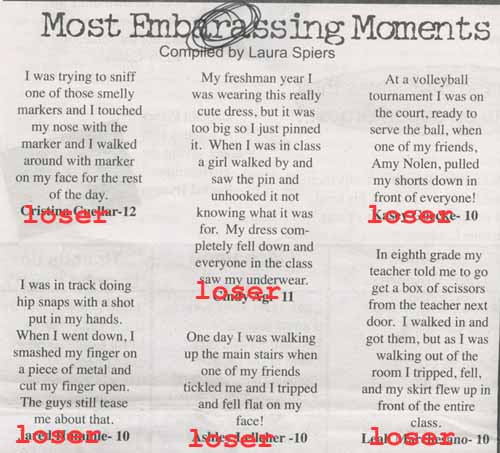 The losers? Actually, there's just one loser. "Are they worth it": the article about friendship. She had FORTY-SEVEN typos. God. I don't think I've made forty-seven typos in my life. (Why don't you try to count the typos on this site?)