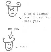 I'm fairly certain that I'm kidding about Germans being dumb. After all, look at the American cow. The American cow looks emotionlessly content, as American cows are apt to look.