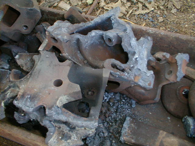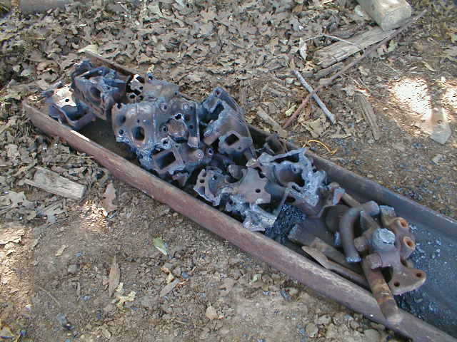 I think each head might have weighed 40 lbs or so. Not to bad for 80 lbs of free good iron. Also pictured are some scrap steel castings