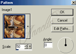 Click OK. 11.Using the Magic Wand, Select the black border. 12. Set your foreground color to Pattern. Pick one of the images you minimized earlier.