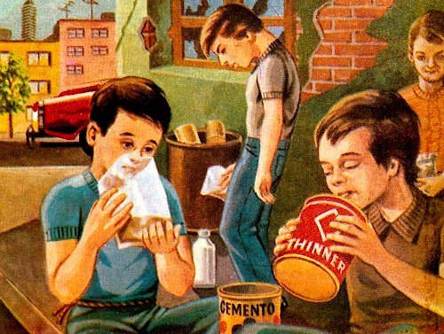 Las consecuencias nocivas del consumo de inhalantes son en gran parte de índole social, porque deteriora la participación de los individuos en su comunidad y da lugar a conductas indeseables: Muchos delincuentes se drogan para darse valor y cometer sus fechorías. Este tipo de adicción se da sobre todo en los círculos infantiles, ya se en los niños de la calle o en los miembros de una familia desintegrada. Al respirar los vapores del cemento, del thiner o de la gasolina, se cae en un estado enervante, se tienen alucinaciones y la realidad se confunde con la fantasía que produce la mente. Estos vapores actúan directamente contra el sistema nervioso destruyen las neuronas. Al cabo de un tiempo de inhalarlos, los adictos pierden sus capacidades mentales, porque las neuronas no se producen. Los adictos se caracterizan por su apatía y la lentitud en sus movimientos. Esta es la forma más barata de drogarse, y muchos niños de la calle recurren a ella para olvidarse del hambre, el frió, la miseria y los malos tratos o abandono de sus padres. En muchos países esta prohibida la venta de estos productos a menores de edad, pero la medida es insuficiente para contrarrestar esta adicción. Además, el uso de inhalantes no se restringe a menores de edad y goza de gran aceptación entre muchos adultos pobres.