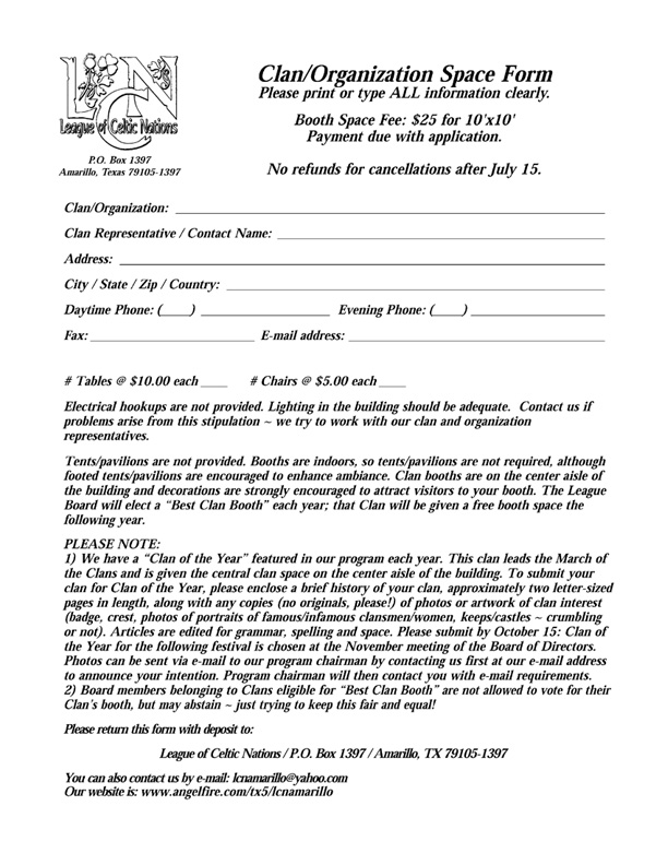 Clans Afghan Raffle Accommodations Links Map to Festival site and Radisson Membership Performers Vendors Home