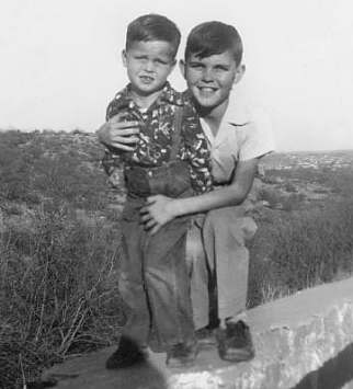 Mom & Dad on couch. Buddy & Darlene on arms. Fain to the right & me to the left. |