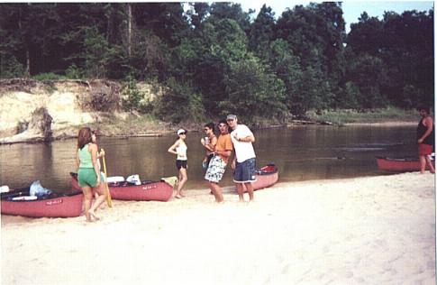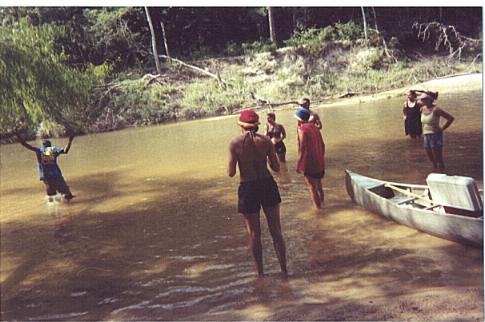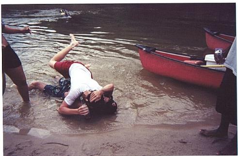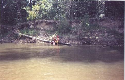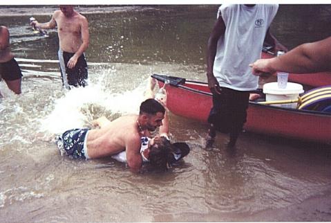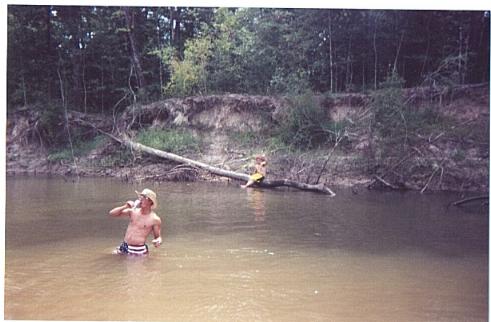 Jerrod cooling off in the water with Kerry relaxing on the tree.