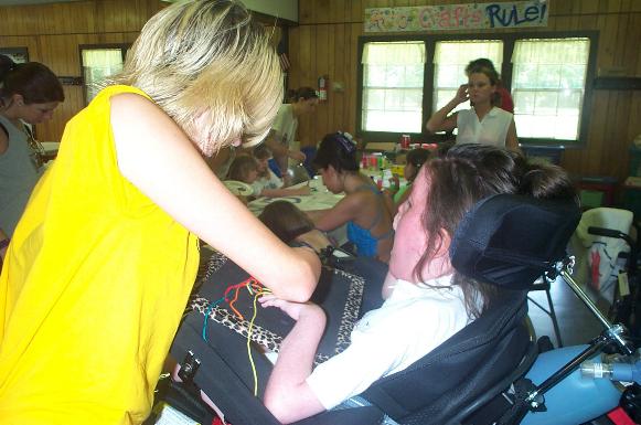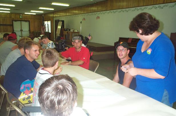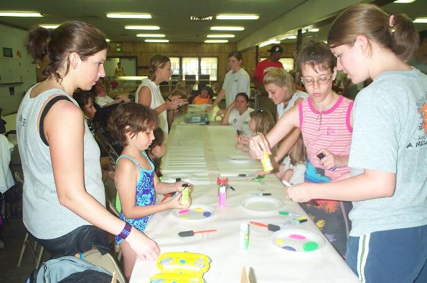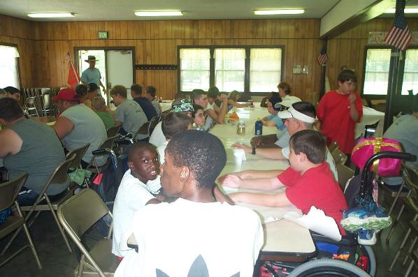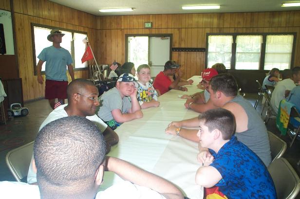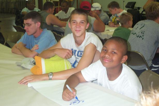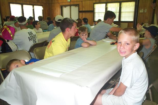 Peek - a - Boo Kelton ...Scottie waits to start the cabin banner for Cabin 11!