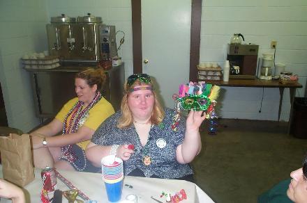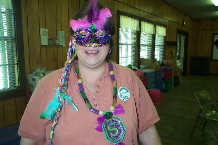 Ms. Simone models her Mardi Gras crafts! We love u, Simone!