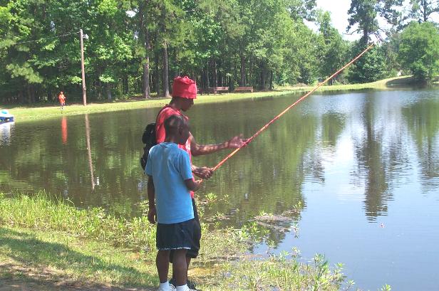 The fishing booth ...supplies furnished by the Parks and Wildlife Dept.