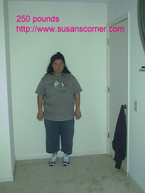 Hi, my name is Susan. My ediets username is Susanweb. I am a 23 year old female who lives in Atlanta. My max weight was 260 pounds, I am currently at 243 pounds. My final goal is 125 pounds. I am enclosing a picture of me at 250 pounds and will send updates as the months go by.