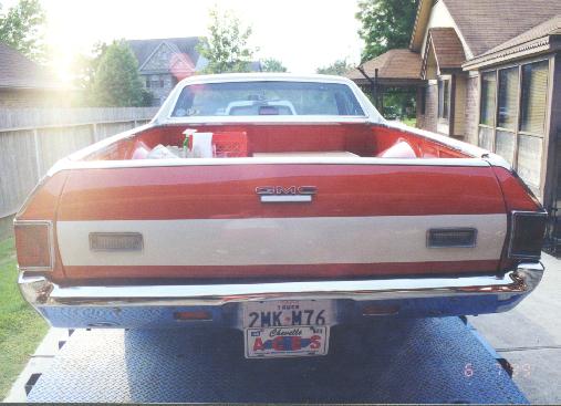 I have a few pics of my friend's 1972 GMC Sprint, but managed to borrow and scan the pics to build and construct another web page. Most of the pics were taken at the ACES Chevelle-abration 1999, which was held during June 10-12, 1999. Not too many GMC Sprints were built, and the first two years yielded low production #s. More info can be found at Dan Carr's GMC Sprint Page. The early Sprints can be considered a sister clone of the El Camino, and the SP package was the ultimate performance vehicle sold through a Pontiac/GMC (or GMC) dealer. GMC produced a Syclone pickup in 1991 and 1992, along with the Typhoon, and not too many people know about the Sprint SP.