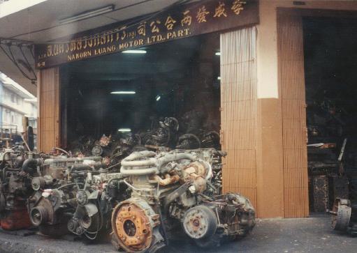 A salvage parts facility, with diesel engines (Chengkon District of Bangkok,