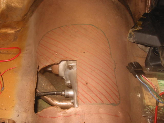 The pic above is a template where a 4 speed tranny hump is located - the hump is used in conjunction with a console. Here's a link if anyone has ever seen a 75-79 tranny hump. After 1974, a tranny hump was not used when a floor shifted automatic was optioned - the shifter was mounted to the floor in a similar fashion like the second generation F-car. After 1974, manual-shifted GM X-cars are a rare find - here's a link in response to stick parts.