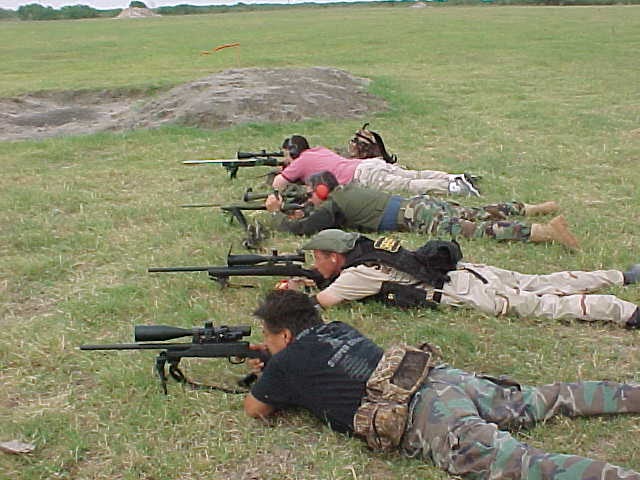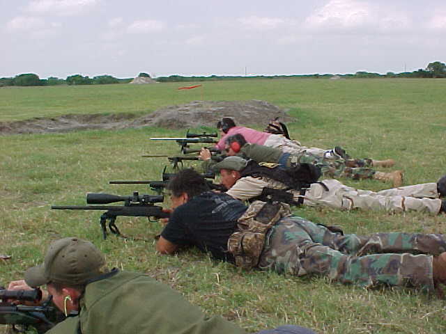 On this day we registered, had a safety briefing and had a rundown of the events we would be shooting over the next several days. After that we made our way over to the range. We were allowed ten minutes to check our zeros at 100 yards. I found that I was hitting high on the target. I had to come down 1/2 minute to hit center. Also the wind condition for the next two days were running about 10 to 15 mph. The wind was blowing across the range at full value. This is typical in south texas. The winds can be as high as 35 mph coming off of the Gulf. This cause some problems for some of the shooters. The shooters were constantly checking the wind.