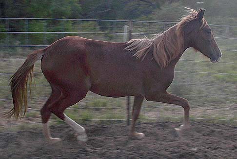 T.E.R. Canela Dulce is an 2-year-old Chestnut Peruvian Paso filly out of Trail's End Ranch's Bolero de Oro and Armonia de Acres Melodicos.