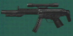 Silenced submachine gun with a telescopic sight. Designed for covert missions. Alternate fire is laser targeted, but single shot only.