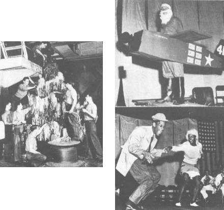 Christmas scenes, 1944. There is a Santa Claus, even on a warship, and time is taken off to greet him with traditional and not-so-traditional festivities.