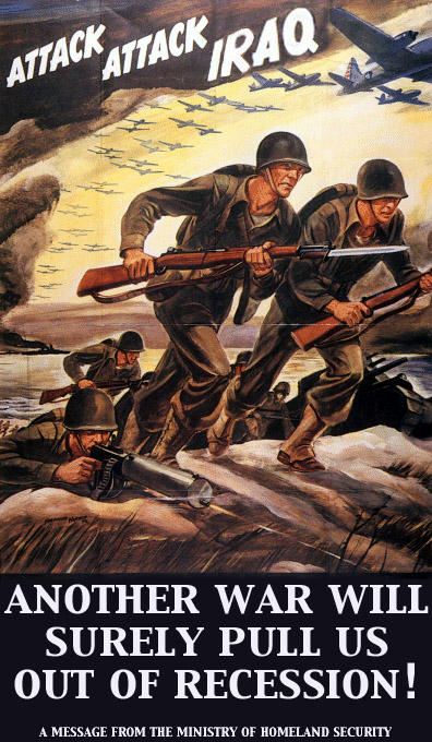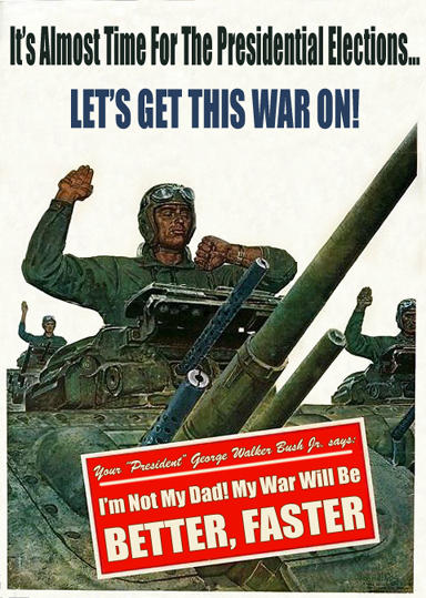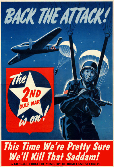 Let's delve deeper into this issue and find the true reason that we're attacking Iraq again. Let's skip the entertaining justifications given by ignorant media reporters about defending Kuwait's "model democracy." Let's ignore the military's persistent need to test new weapons. Let's even bypass the fact that we're obligated to protect our oil interests in the middle east so we can continue to drive gas guzzling SUVs. The real reason is that we like to pick on basically defenseless countries with limited war capabilities. I mean, what the hell does Iraq have going for it anyway? We like policing the world and we like war. Our country has only been around for 200 years and we've already had 10 major wars. It's the only thing our country is good at. We can't compete with foreign competitors in any given market, we can't provide decent health care to old people, and we can't educate our children except to believe in our newly acquired fascism. All we can do is bomb the shit outta people. We're damn good at that.